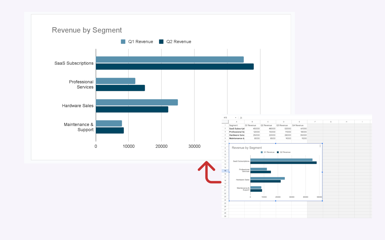 This is the approach taken by tools like ExtraChart, a Google Slides™ add-on designed specifically for creating presentation-ready stacked and grouped bar charts. Charts are inserted directly into Slides as clean visuals, with layouts optimized for presentations rather than spreadsheets.
